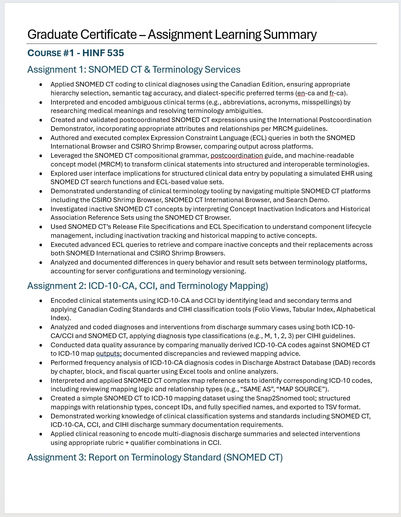 Discover a curated collection of my work and accomplishments in healthcare data standards, visual analytics, and real-world problem-solving. From in-depth technical reports to dynamic dashboards and impactful presentations, each project highlights my commitment to creating meaningful solutions. Click on any image to learn more about the story behind the work.