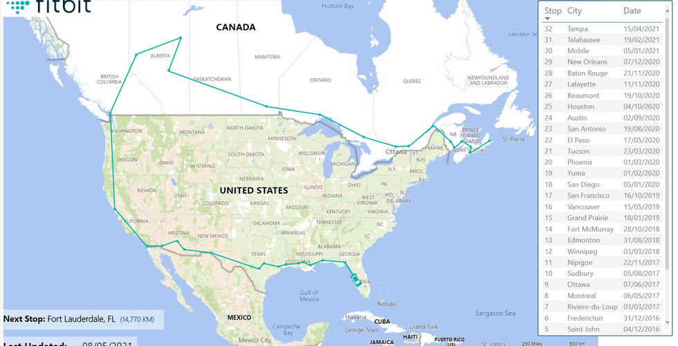 I'm now on my 2nd iteration of the report, and while there's still definitely things I'd like to change, I'm pretty happy with it. I'm especially pleased with the map (I'm almost to Tampa!) and the mountain climb (only 2 summits left to go!).